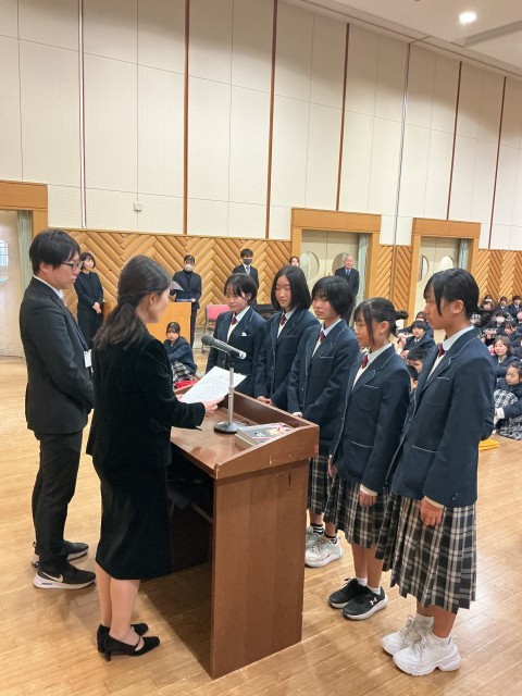 各部活動や沼津文園、書道コンクールの表彰が行われました。