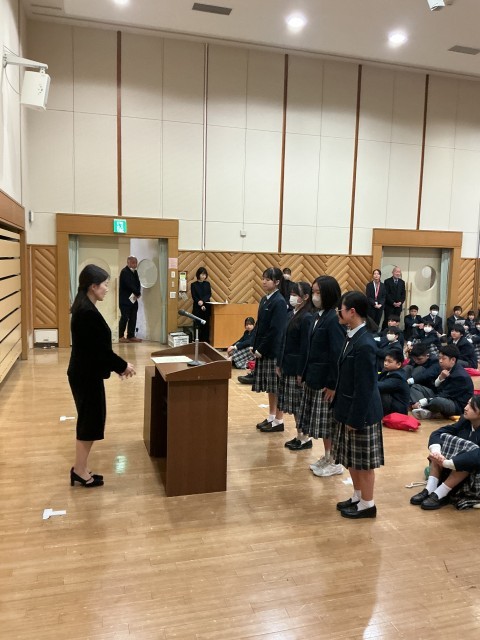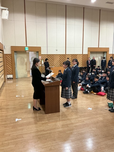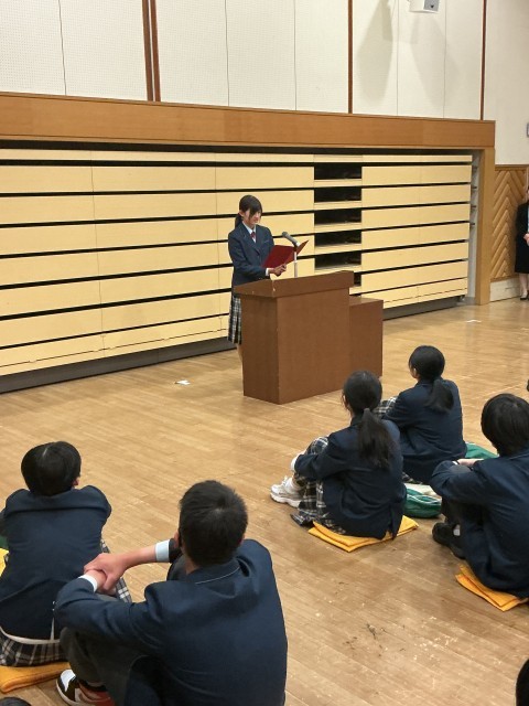 3月19日(木)修了式に続いて中等部集会です。