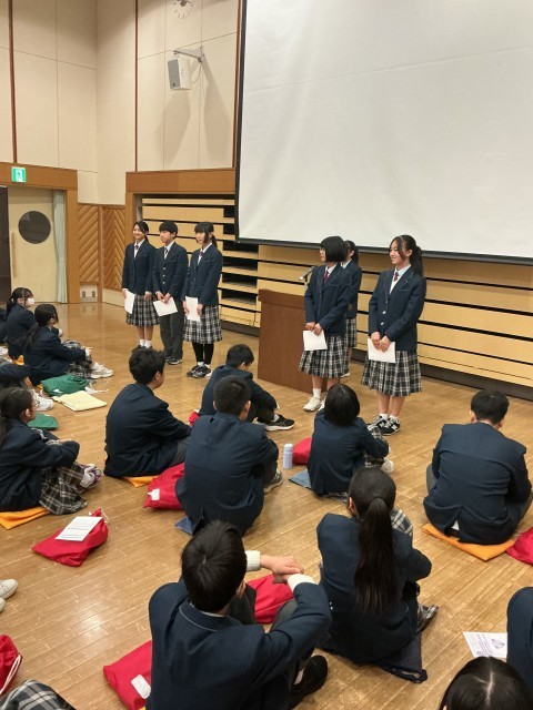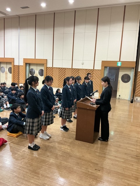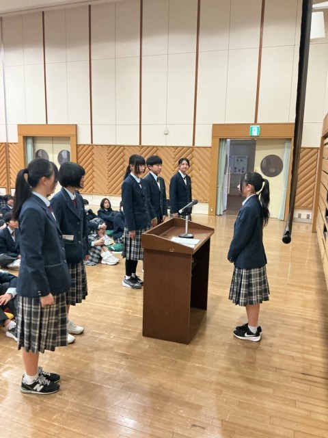4月7日(火)学年代表による新年度の抱負、生徒会役員の任命が行われました。