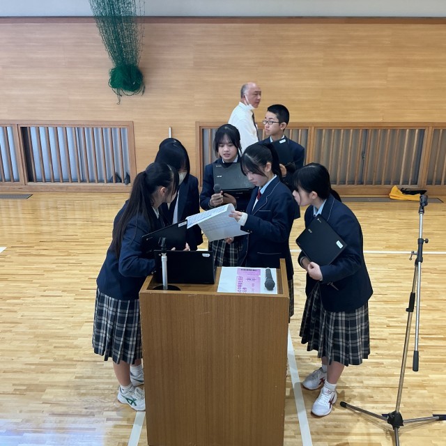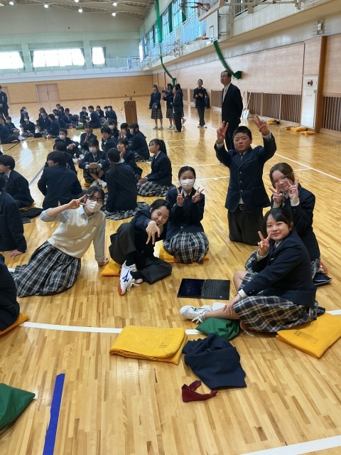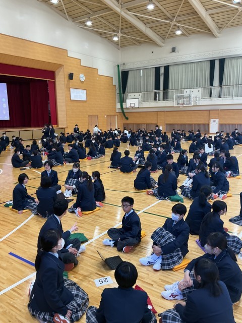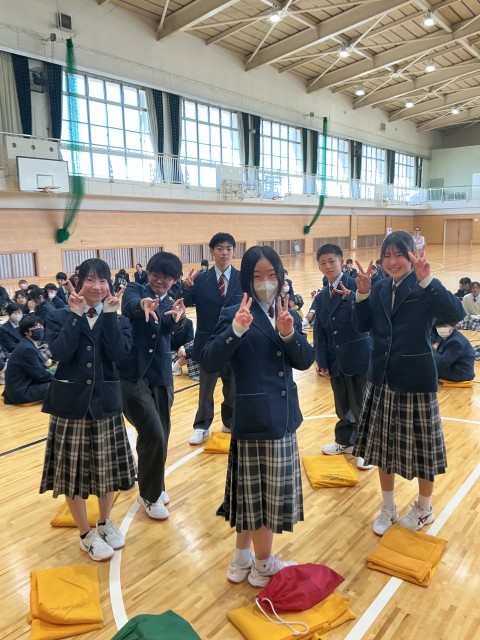 4月8日(水)本日の第1時は、対面式でした。生徒会本部が企画した、生徒による入学式です。
