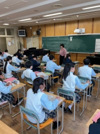 4月22日(水)全員でグランドに避難んした後は、地区別に集合して、学年代表を決めたり、危険箇所について話し合ったりしました。