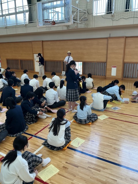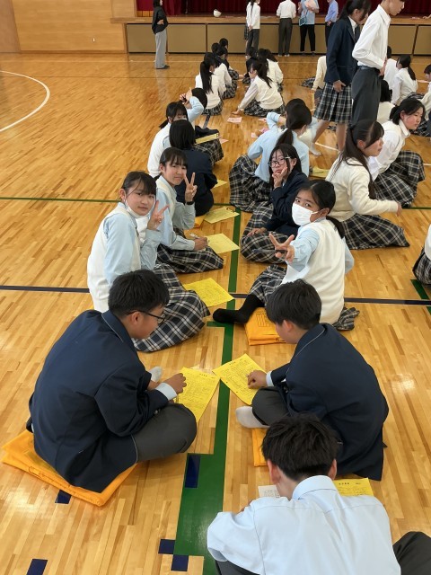 4月22日(水)全員でグランドに避難んした後は、地区別に集合して、学年代表を決めたり、危険箇所について話し合ったりしました。
