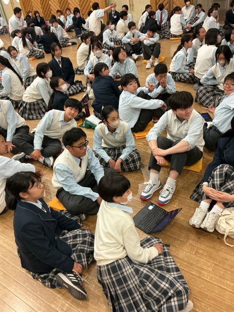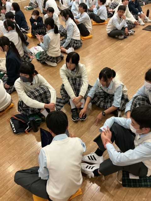 中等部3学年が一緒になって縦割りのチームを作ってかフートで盛り上がりました。