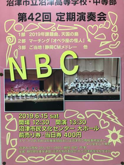 沼津市立沼津高等学校・中等部吹奏楽部 第42回定期演奏会が、6月15日(土)沼津市民文化センターで開催されます。12:30開場、13:30開演です。
