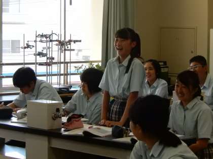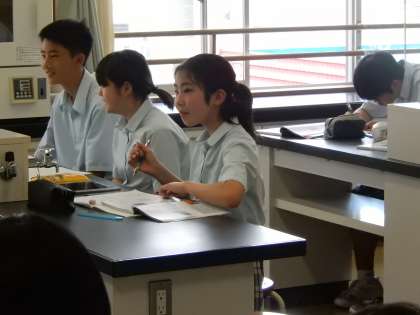 2年生の理科の様子です。鷹峯祭前に行った実験のまとめを行っていました。発表では思わず笑いが…。