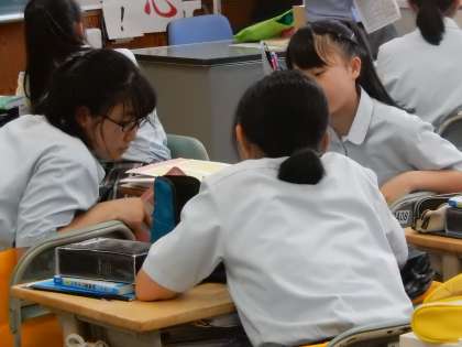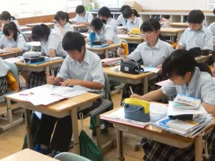 2年生の英語演習の様子です。問題演習を終え、答え合わせに入るところでした。