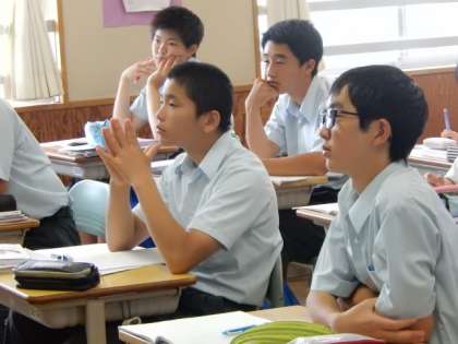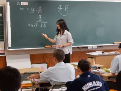 3年生の数学の様子です。ルートのつく計算がだんだん難しくなってきました。先生の説明をよく聞いています。