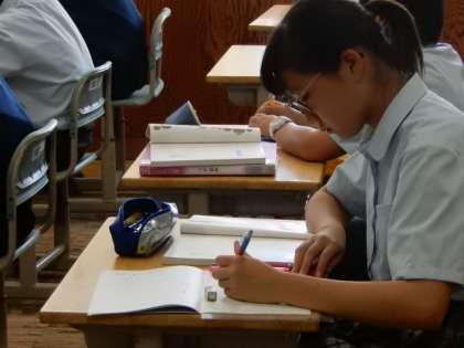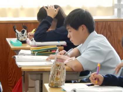 1年生の国語の様子です。課題について、自分の考えをノートにまとめています。熱心に取り組んでいます、