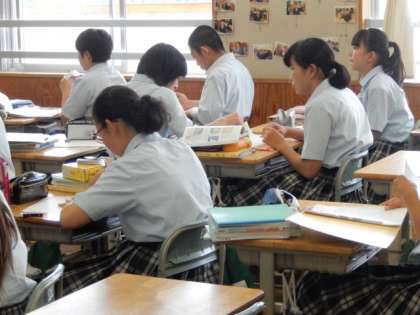 2年生の国語です。グループの発表後、先生の説明を聞いてまとめています。