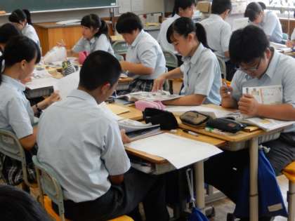 3年生の社会です。レポートをグループで協力してまとめます。ちょうど分担が決まり、始まったところです。