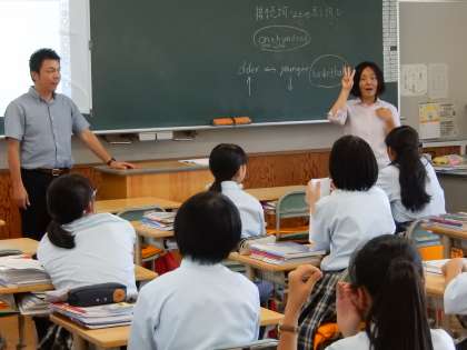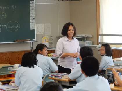 1年生の英語です。How many 〜 ? を使って会話を楽しんでいます。