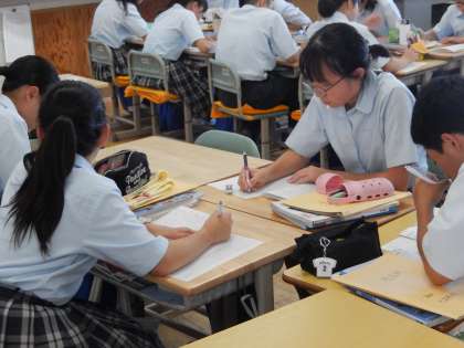 3年生の社会です。グループで分担して、レポートのまとめをしているところです。