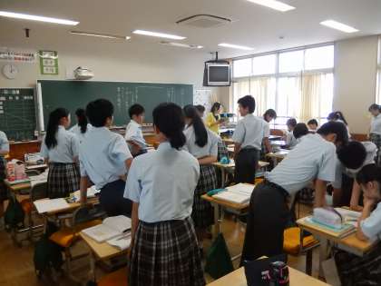 2年生の国語です。課題について仲間と話し合い、理解できたと思う人から立ち上がっていきました。