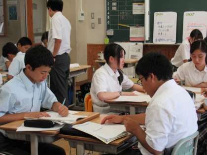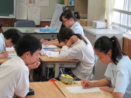 今日は中等部3年生と1年生を中心に学習の指導をしていただきました。