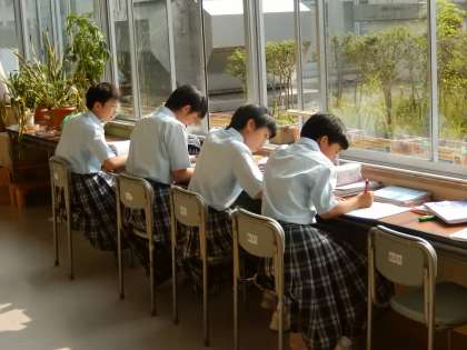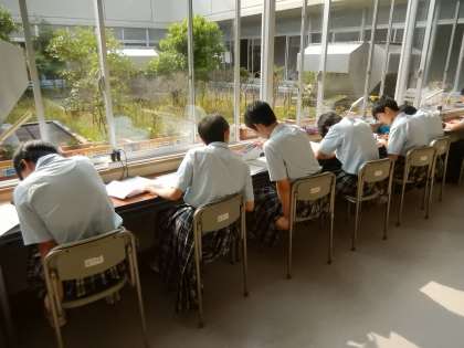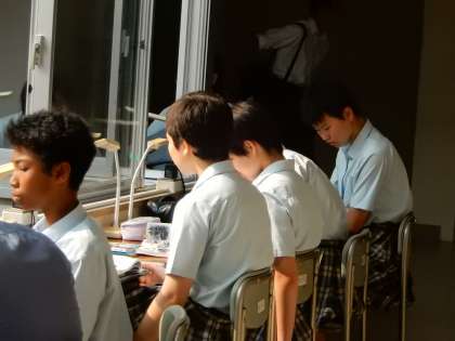 今日、明日は期末テスト。朝から職員室前でがんばる中等部生の姿です。