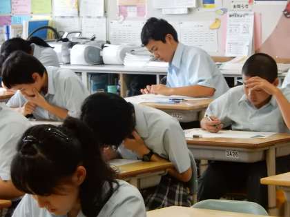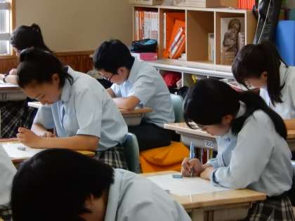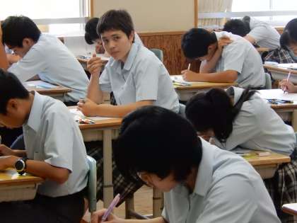 3年生の期末テストの様子です。見直しまで忘れずに。