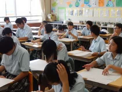 2年生の数学です。期末テストが返却され、ふりかえりを行っているところでした。