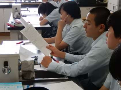 3年生の理科です。こちらもテスト編伽後の解説を行っていました。「どうして?」や「なるほど!」という声が聞こえてきました。間違えた問題をやり直し、しっかり頭に入れ直すことも大切です。