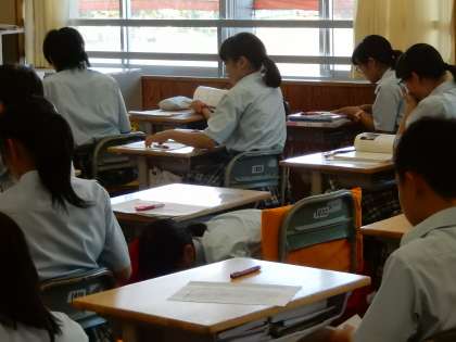 1年生の国語です。テストの振り返りが終わり、次の課題に取り組もうとしていました。