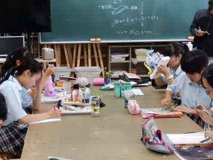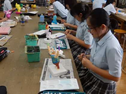 2年生の美術です。「神様」の仕上げが進んでいます。楽しそうに取り組んでいます。