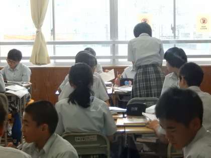 3年生の社会です。「太平洋戦争中の人々はどんな生活をしていたのか?」をテーマに、調べたことを発表していました。