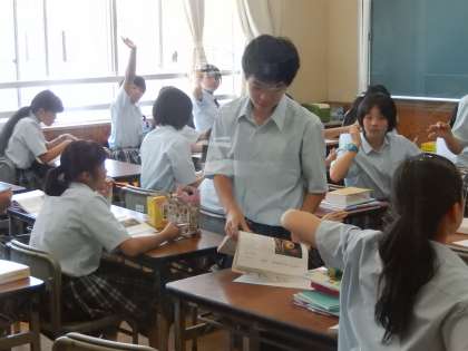 1年生の国語です。教室で課題を確認した後、音読テストが始まりました。