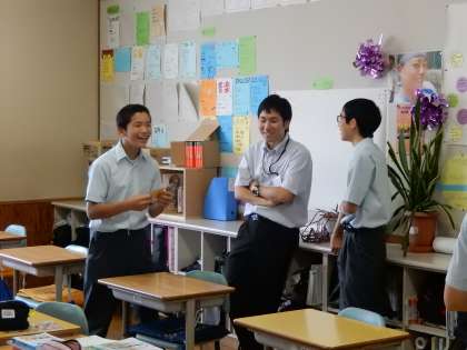 3年生、第3集団は英語です。参観する保護者や先生方も巻き込んだゲームから始まりました。