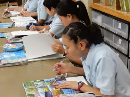 1年生の美術です。絵文字をつくる活動をしていました。良いアイディアは浮かびましたか?