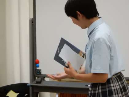 1年生の英語です。自分の特技として、作品を持参する生徒もいました。ジョージ先生にしっかり伝わったかな?