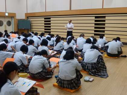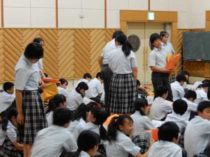 2年生の総合的な学習の時間です。9月に行われる職業体験学習の業種発表がありました。張り切って準備を進めてください。