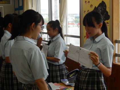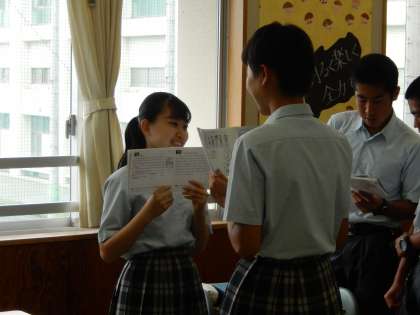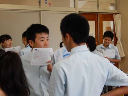 3年生の英語です。資料を用いてReading & Shadowingを行っていました。Reading、Listening、Speaking の力が伸びているはずです。
