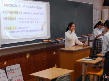 怒りの仕組みや感情のピークについて説明が行われました。2年生の様子です。