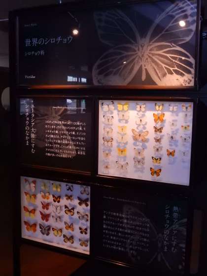 ミュージアムキャラバンの展示を紹介します。今日は「世界の昆虫」から、「世界のタテハチョウ」と「世界のシロチョウ」です。