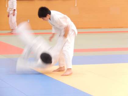 3年生男子の保体、柔道です。投げ技に入り、「大腰」に挑戦していました。豪快に決まると、まわりの生徒から「おぉ」という声が漏れていました。