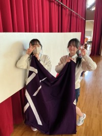 2年生の美術です。遠近法を利用したデザインを仕上げています。いろいろと工夫した楽しい作品が見られました。