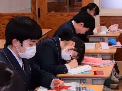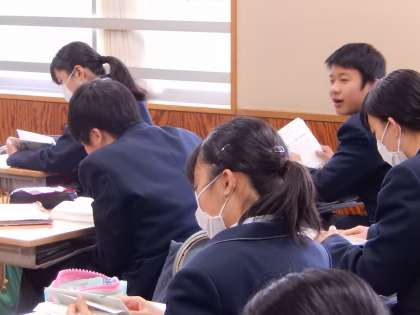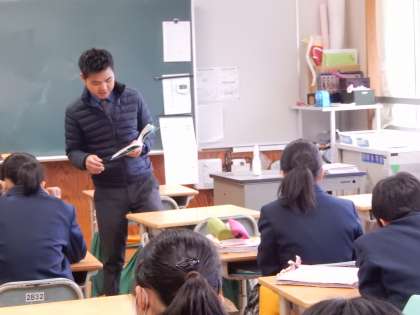 2年生の英語演習です。単語の読みやその文例の発音練習をしていました。