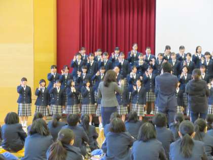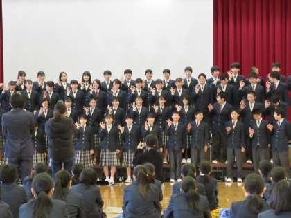 合唱発表会10(3年生) 公開日 2020/12/04 更新日 2020/12/04 学校では今… 3年生の合唱は、3年生らしい「こたえ」を探す歌詞を丁寧に歌い上げていました。パートの重なりも綺麗で、とても素晴らしかったです。 いいね(0)