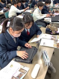社会では立憲制国家成立の学習です。国民の意見が反映される政治について、個々の意見を出し合います。かなり長い文章でしたが皆素早く入力していました。
