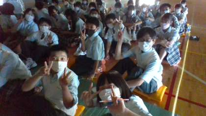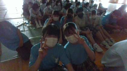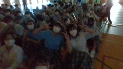 写真は上から1年生、2年生、3年生です。吹奏楽部の生徒はお揃いのTシャツを着ています。