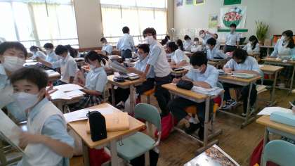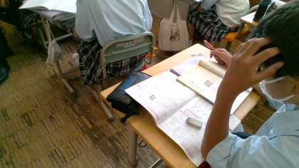 来週水曜日の期末テストに向けて勉強をしています。1年A組の様子です。