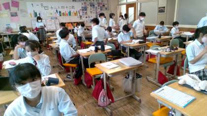 各教科担当に質問がある生徒はそれぞれの教室に行き、質問しています。