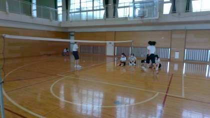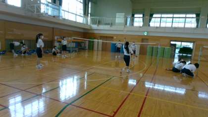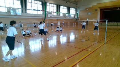 バドミントンの試合をやっています。1点1点に一喜一憂しています。
