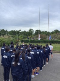 サンパーク都留グラススキー場にて。学年写真です。 山梨県都留市を出発し、学校に向...