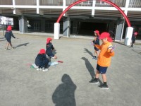 1・2年生の体育では、準備体操から元気いっぱいに取り組みました。長縄跳びでは...