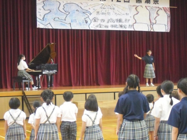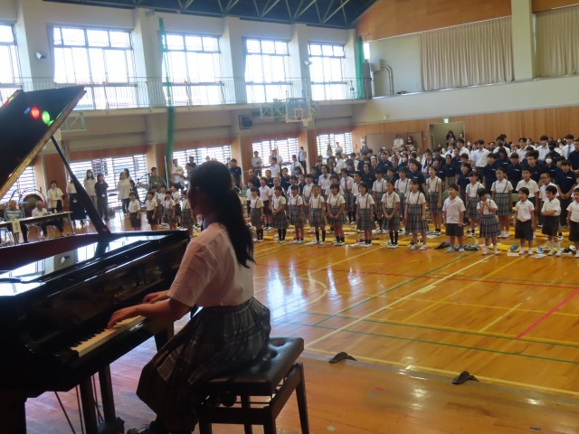5年生以上の「合唱コンクール」を前に、全校合唱を行いました。