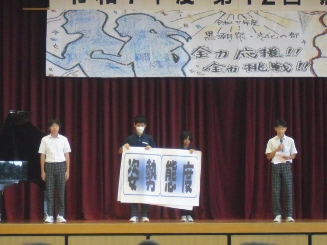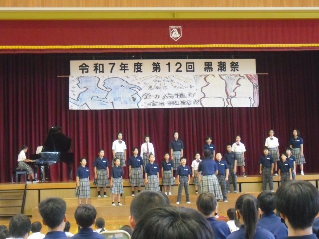 5~9年生の発表は、「合唱コンクール」となり、各学級の代表者及び教員からの審査員が審査し、点数に応じて賞が授与されます。