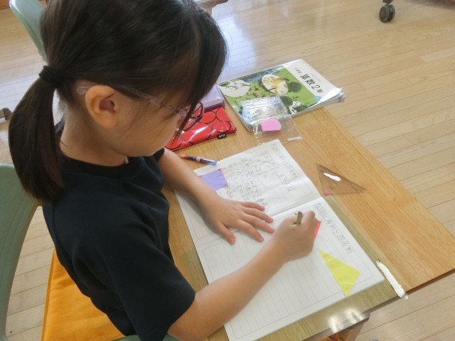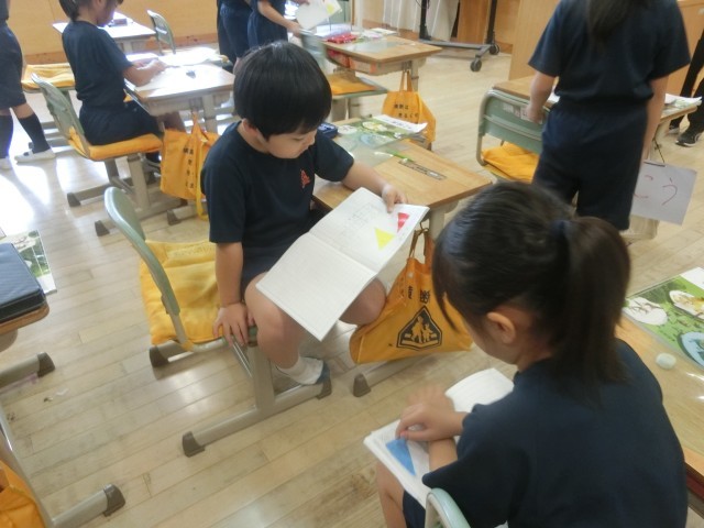 2A算数では、三角形と四角形についての学習をしています。今日は、長方形や正方形を分解したり、形を観察したりして、直角三角形にはどんな形のものがあるか学習しました。