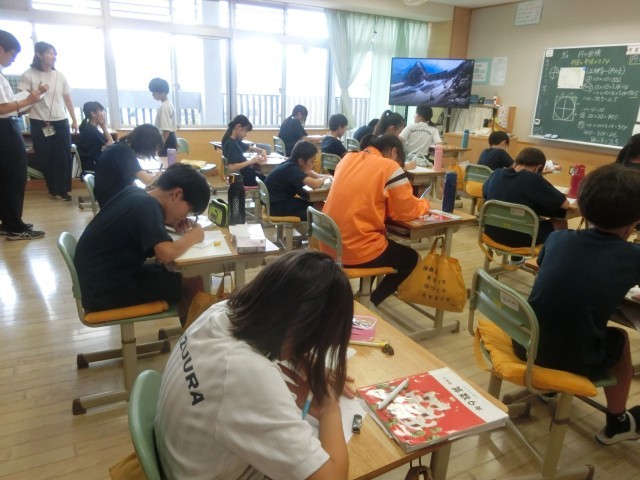 6A算数では、円の面積の学習をしています。今日は、円や正方形を組み合わせた複合図形の面積について、いろいろな求め方を考えました。