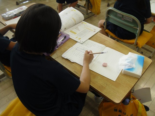 2Aの算数では、かけ算の文章問題に挑戦していました。