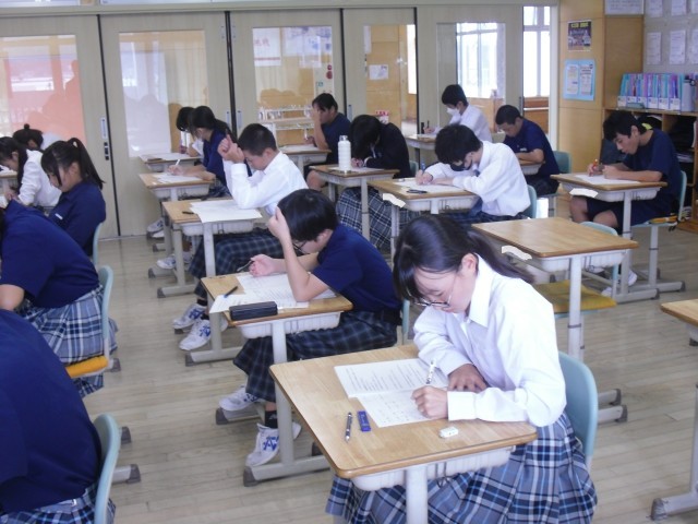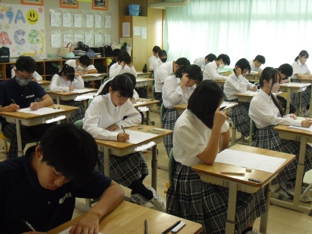 10月15日(水)、7・8・9年生は中間テストを行っています。